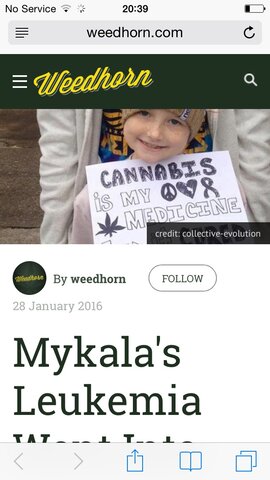 Cannbis oil is helping kids with cancer https://www.weedhorn.com/leukemia-cannabis-oil-1576264609.html?utm_campaign=river&utm_medium=email&utm_source=rebelmouse