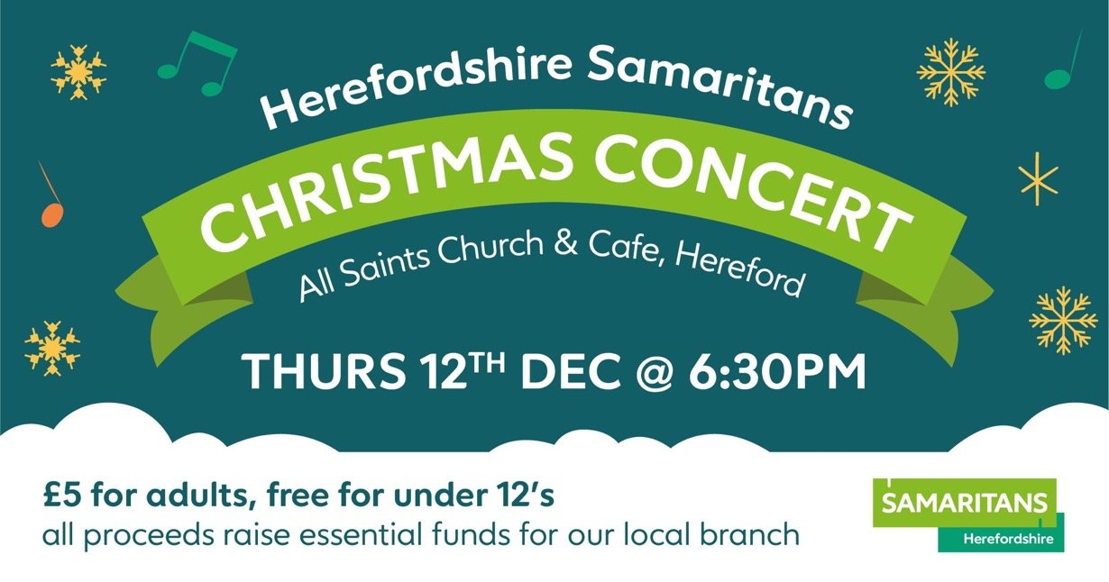 Tickets are selling well and can be bought at the door on the evening or via the official link below £5 adults (under 12's free) helping to raise essential funds for self funded Herefordshire branch so we can continue to be there when callers locally and nationally are finding life difficult.