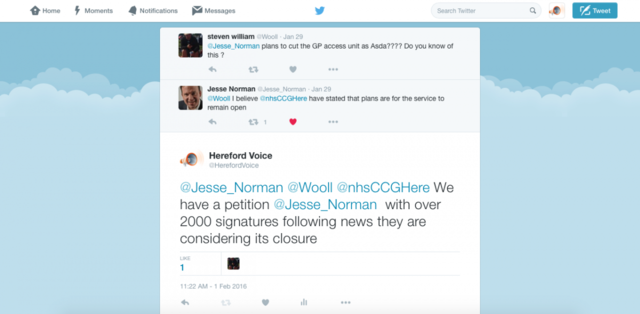 Glenda Powell Posted March 15, 2017 Report Posted March 15, 2017 I attended the consultation about the GP walk-in centre this afternoon and presented both the on-line petition and my paper petition total signatures of 6,556 to the chairman of the CCG, I was disappointed with the attendance only 8 people including myself attended the consultation between 3pm-5pm. There was a very good discussion and 7 out of the 8 people wanted the GP centre to stay. One man picked the CCG up about the consultation papers because their verbal address did not correspond with what was in the printed paperwork given out. I said if they want to sell their idea to the people of Hereford they should have up to date information available that corresponds with their presentation, CCG answer was they are updating their information next week, but I insisted that information should of been available today. Apparently CCG idea is to put the surgery that is in Ross Road, and Taurus into the walk-in centre building, where you can see a Dr providing you make an appointment with the surgery, but you have to be a registered patient. I asked some very awkward questions that they could not give a satisfactory answer to. People said it will not work because people are waiting up to 5 weeks for a doctors appointment at their surgeries and if the GP walk-in centre goes people will just go back to attending A&E with anything between 6 to 12 hour wait before you see a doctor. I was told that councillors were going to attend the consultation tonight, let us see their response if any to the CCG proposals. I wait with interest at any comments.