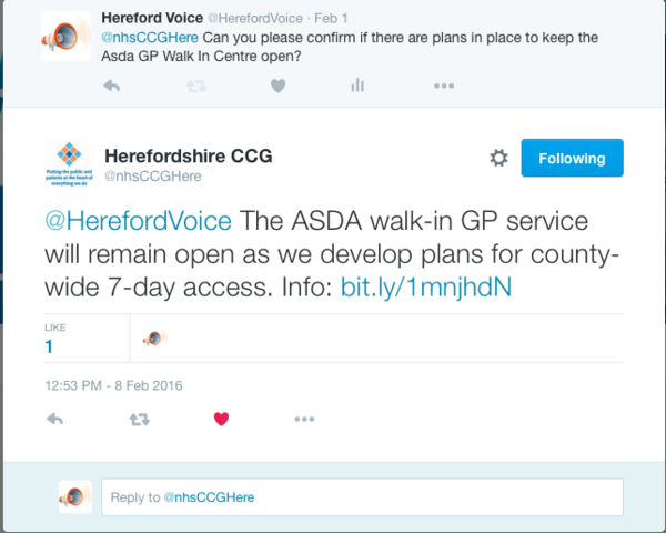 lpusseycat Posted June 17, 2017 Report Posted June 17, 2017 Health bosses have decided to close Hereford's walk-in-medical centre at Asda despite fears that it could affect the most vulnerable people in the area. The county's Clinical Commissioning Group - CCG - will replace it with the current Moorfield House surgery and the out of hours service where people can get treatment in the evening and at weekends.They say they'll give additional funding to local GP surgeries to make sure people can get appointments. The changes will happen at the end of July.