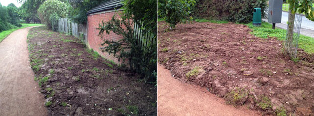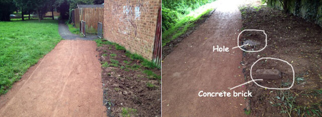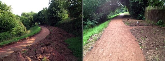 23. I have to concur with Mick, this new footpath is very poor and yes I think you will find that this is what Amey consider FINISHED. It looks incomplete to me, I took a few pictures you make up your own minds. The picture on the left is during the works and the picture on the right, believe it or not but is the finished article, I took this 30 mins ago. The people who own the garage in one of the pictures I would imagine will not be too happy as the mud has just been built up causing a slope away from the path but in the direction of their garage, I expect this to flood at some point... As Mick has pointed out, why is it not tarmac? this is a horrible finish, this took them 3 days! hence why it looks that way. This joins the existing tarmac path, so looks incomplete. Why oh why don't jobs/projects get done properly?????