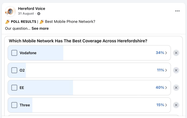 We had a big response to our 'Which Mobile Network Has The Best Coverage Across Herefordshire?' recently The response was so good it never went unnoticed by our spy and yes you guessed it...👇- 143 replies