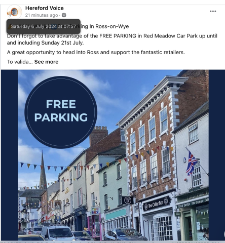 Free Parking in Ross-on-Wye Oh look, just 7 minutes later, a quick opportunity to score some interaction and more clicks! 👇 Of course they don't follow our every posts 😂 Hereford Voice - Leading The Way 😉- 143 replies