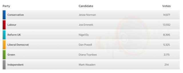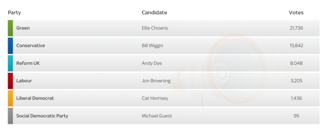 Ellie Chowns (Green) wins seat from Sir Bill Wiggin in North Herefordshire Full results for North Herefordshire below 👇