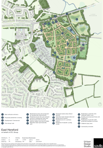 An outline planning application has been submitted to Herefordshire Council. 'Outline planning application for the demolition of existing buildings and structures and the erection of up to 350 dwellings (including affordable housing), a farm shop and cafรฉ, employment workspaces, and land for a potential primary school, along with associated parking, access roads, walking and cycling routes, public open space, landscaping, sustainable urban drainage and other associated works, site clearance and infrastructure. All matters reserved except access, which is partially reserved, with detailed approval sought for the primary vehicular site access via the A438' Planning Application P240422/F
