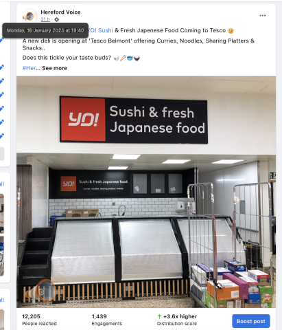Oh look, last night while shopping we noticed a new Sushi deli coming to Tesco Belmont in Hereford But as predicted below, things catch on really quickly, particularly when there is a lot of local interest and of course 'CLICKS'- 141 replies