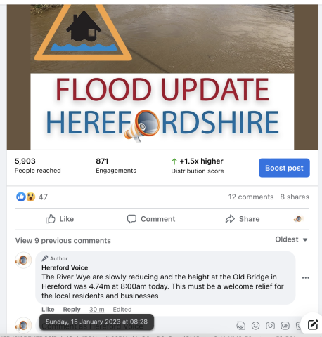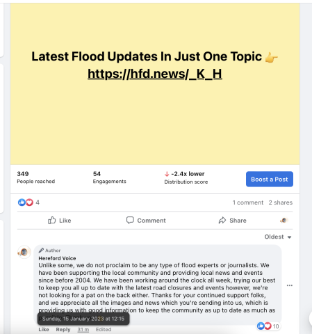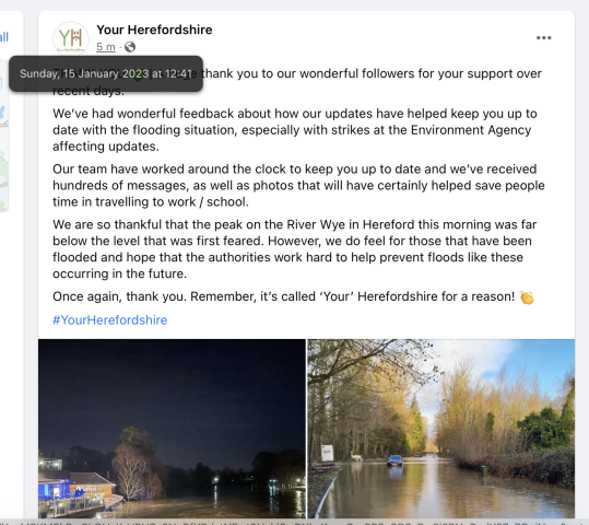 I recent years Herefordshire like many other counties have experienced annual floods, well this is like a trigger, some people literally get super super excited about it and start posting endless pictures and even film themselves on live videos on Facebook with the actual floods in the background, it's almost like some sort of therapy especially for people who really seem to thrive on others misfortunes... We try to limit our news articles and we often just update one topic, especially around road closures because there can be constant changes. Unlike some, we do not proclaim to be any type of flood experts or journalists. We have been supporting the local community and providing local news and events since before 2004. We have been working around the clock all week, trying our best to keep you all up to date with the latest road closures and events however, we're certainly not looking for a 'pat on the back' or any self self praise either. So we though we would thank our followers.. Guess what happened just 26 minutes later?? See for yourselves So a new record beating the previous but one minute (new best time 26 minutes). This flood update below 👇 we published expressing our support and relief for local residents and businesses, this was at 08:28hrs And then just 2 minutes later...- 141 replies