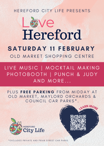 The Saturday before Valentine’s Day, Hereford’s Old Market will be filled with celebration as Hereford City Life deliver their Love Hereford event. In addition to free parking, a photobooth and live music, the City Life team have now confirmed further details about this exciting event, with a mocktail masterclass, family entertainment and an unmissable giveaway announced. This entertainment-filled schedule will have visitors feeling ready for romance while experiencing what’s on offer in Hereford city centre! Couple’s Mocktail Masterclass with The Tipsy Kat Pair up and try your hand at mocktail making in this fun workshop run by local cocktail experts The Tipsy Kat. They’ll walk you through the steps as you shake things up making two delicious Valentine’s Mocktails. Sessions last 45 minutes and you will be able to take your creations (and a handy recipe card) away with you afterward. Tickets (for two people) will cost £20 plus booking fee and are available to book via the link below. Family Fun with a Valentine’s Punch & Judy Show Love Hereford isn’t just for loved-up couples; families are sure to be entertained by a special Valentine’s-themed Punch & Judy show. There will be two free-to-watch performances plus an opportunity to enjoy some expert balloon-modelling in between. The first show will begin at midday. At the event, visitors will be able to pick up handy gift guides and goodies, and enter an exciting Love Hereford giveaway. The prize is a treasure-trove of goodies from incredible local businesses, including The Beefy Boys, Phillip Morris & Sons and The Coffee Cart Company, Hereford. Information about the event 👉 https://bit.ly/LoveHereford2023 Hereford City Life is a consumer brand of Hereford Business Improvement District, run on behalf of BID members. Hereford BID is a non-profit private company (limited) funded by 500 businesses in the city centre. The organisation has 3 core strands underpinning its business plan, a document based on feedback from its member businesses on what they want to see happen, these are: i) High Profile Hereford - Marketing and Events ii) The Hereford Experience – Safe and Clean iii) Business Voice – Lobbying & Support. The company is run by up to 15 board directors who are also levy paying members.