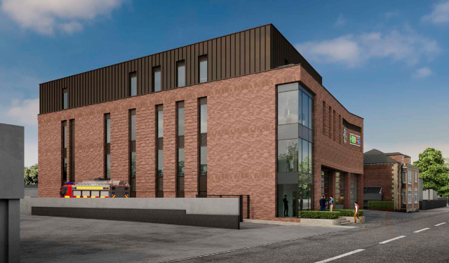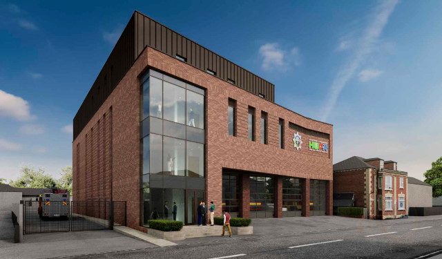 New Hereford Fire Station proposed Illustration Adrian Elliot of behalf of Hereford and Worcester Fire and Rescue Service have submitted plans for the proposed demolition of an existing three-storey fire station, training tower and associated ancillary buildings. Erection of a new three storey fire station, training tower, associated car parking and cycle storage, at-grade external training area, re-fuel facility, sub- stations, telecommunications antenna, vehicular access and associated works. The existing Hereford Fire Station building was identified by Hereford and Worcester Fire Rescue Service (HWFRS) as needing upgrading, as it is no longer fit for purpose and does not perform well economically or environmentally. Following a feasibility study carried out by Bond Bryan in early 2021, a decision was made to proceed on the basis of demolishing the existing fire station building and to build in its place a new building accommodating the same functions as existing. The proposed scheme is to replace the existing fire station building on the same site, which is a 4 storey 1950s building. The current fire station has ancillary buildings comprising of the BA training chamber, hose repair room, garage/ drill tower, temporary showers and water tank and diesel pump. The proposed scheme will demolish the ancillary building structures with the functions being accommodated within the new building. It is proposed that the water tank and diesel pump will be located within the grounds of the new development, as well as a new training tower. The current fire station and surrounding site is owned by Hereford and Worcester Fire Authority (H&WFA).