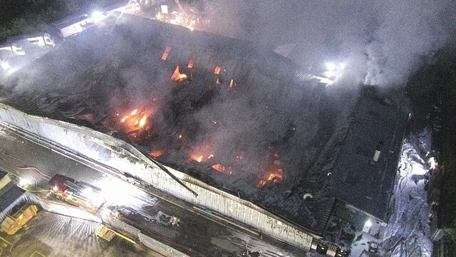 Dramatic drone images from Hereford & Worcester Fire and Rescue Service at the 10 pump factory fire at Overross Industrial Estate in Ross-on-Wye this morning. Good progress made through the early hours and now 4 appliances remain on scene damping down, with fire investigation officers working to establish the cause. Thankfully there are no reports of any casualties and fantastic team work from all the fire fighters and emergency services who attended. Photographs courtesy of Ade Farmer (Group Commander HWFRS)- 2 replies