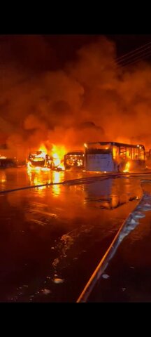 5. Hereford & Worcester Fire and Rescue Service crews supported their colleagues from Northfield Fire Station at a very large fire at Kevs Cars and Coaches Ltd in Birmingham Road, Lydiate Ash in Bromsgrove North Worcestershire during the early hours. 📸 WMFS Northfield