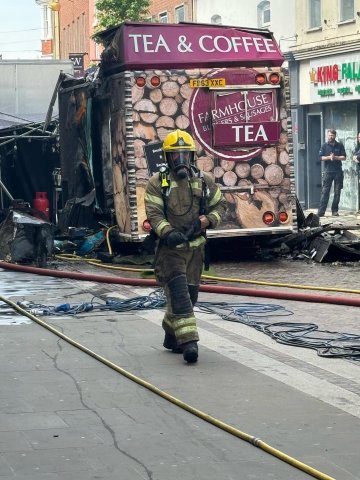 Commercial Street was engulfed in thick black smoke as flames billowed from the stall this morning. A spokesperson for Hereford & Worcester Fire and Rescue Service said: “Four Hereford & Worcester Fire and Rescue Service crews – two from Hereford and one each from Leominster and Fownhope Fire Stations – plus the incident command unit from Malvern were called at 10:58 on 7 May to a fire with persons reported in Commercial Street, Hereford.