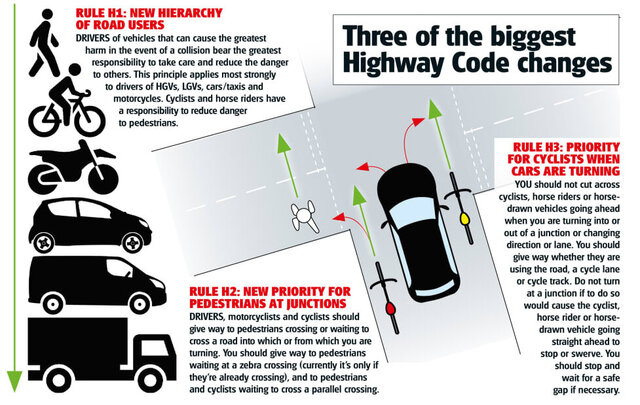 Be aware the Department of Transport have made changes to the Highway Code Rules which will be implemented from the 29th January 2022. The rules establish a hierarchy of road users, prioritising road users most at risk.