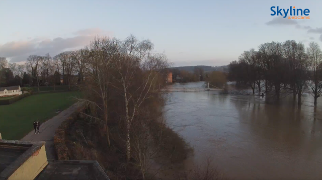 The River Wye is Hereford is expected to peak this evening at 5.5 metres, check out the LIVE panoramic views of the Victoria Bridge and the River Wye in Hereford via our LIVE Webcam - LIVE FEED https://hfd.news/k17 Hosted by our lovely friends at The Pavilion, Castle Green Hereford.