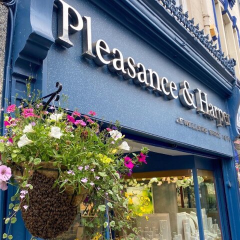 News | Pleasance & Harper Jewellers & Watch Specialists had a stunning swarm of bees arrive at their store today They called out our dear friend Laura from Hey, Honey to see the most beautiful bee swarm hanging from one of their baskets outside the shop. Please be aware that there are still bees in the area (scout bees returning looking for their Queen) so if you are allergic to bee stings best to avoid the immediate area. Hey, Honey have now rehomed them in one of their hives on the The Green Dragon Hotel roof but there will still be some stragglers about for a while so people please take care. #HerefordVoice #HerefordNews #Hereford