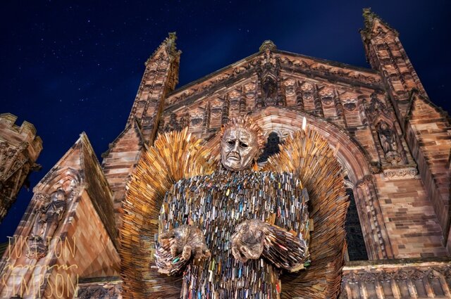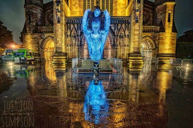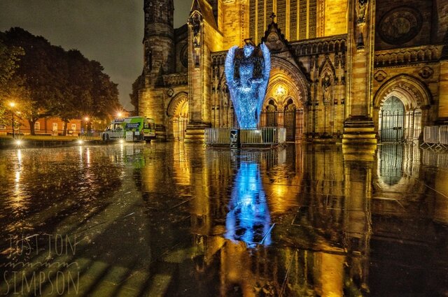 Exceptional photographs again from our good friend Jon Simpson, the Knife Angel Monument looks even more incredible in the rain, we're just loving the reflections and another set of extraordinary images that Jon has managed to create. Jon wrote; Reflecting on the Knife Angel. The Knife Angel Hereford is free to visit and on display outside Hereford Cathedral until 12 July. Created by Alfie's Art and the The British Ironwork Centre, to highlight knife crime and educate young people of the harmful effect violent behaviour can have on their communities. It was absolutely chucking it down when I took these and despite the rain people were still stopping on their walk home from a night out to stand for a while and take it in. The 2nd photo is the reflection in the water on top of the Knife Bank Amnesty Bin, and is among my favourite photos I've ever taken. 👇