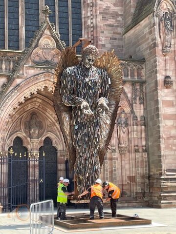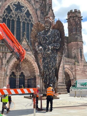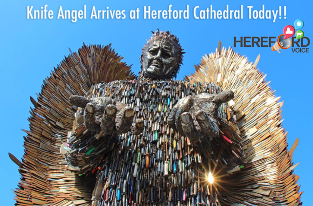 After 18 months of preparation and anticipation, the Knife Angel will finally be arriving at Hereford Cathedral later today! Hereford Voice is so proud to have been able to promote and support the Knife Angel Hereford project for many months leading up to the arrival of the statue in Hereford later today and wish Alison Davies, Meryl Cain and the whole team behind this fabulous event a very successful month ahead. Knife Angel - Also known as the National Monument Against Violence and Aggression, this magnificent 27ft statue built from 100,000 confiscated knives and blades and will be on display at the Cathedral between Monday 14 June - 12 July. Events | The Knife Angel team has been able to organise an exciting range of free-to-attend events to accompany the Knife Angel’s visit and in order to stimulate discussion on the devastating impact violence has on all our lives. These include: A full day virtual conference, entitled ‘Knife Angel Hereford: Crime in 2021 – From Knowledge to Practice’ (see: etc https://hfd.news/em9 for further information and bookings) A comprehensive selection of workshops to be held in locations throughout Hereford City from 21 June to 11 July. Subjects range from ‘Managing post-lockdown stress’ to interactive medical workshops and creative activities. Further details of these free-to-attend events and booking information can be viewed on the Knife Angel’s website: https://bit.ly/3vSI9in Hereford Voice have drawn up a complete and comprehensive list of venues, dates and times etc https://hfd.news/em9 Two walks (22nd and 27th June), arranged as part of the Herefordshire Walking Festival, which include the Knife Angel as part of their route (see: https://www.herefordshirewalkingfestival.co.uk/our-walks for further information). A weapons amnesty, approved by West Mercia Police, where knives, blades and other weapons can be safely disposed. The team responsible for bringing the Knife Angel to Hereford is headed by Alison Davies, who lost her son, Mark, to knife crime in 2018, and Meryl Cain. Alison Davies comments: The Knife Angel will be located outside the cathedral and will be free to visit with no need for visitors to book in advance. Relevant precautions, including a one-way system around the Knife Angel and volunteer stewarding teams, will be in place during the day to help welcome and guide visitors. For further information about the Knife Angel’s visit to Hereford, please visit the website https://knifeangelhereford.co.uk/. Donate to support Knife Angel Hereford 👉 https://hfd.news/u4c #EmbraceHereford and please make time to visit this thought-provoking 'Knife Angel' statue.