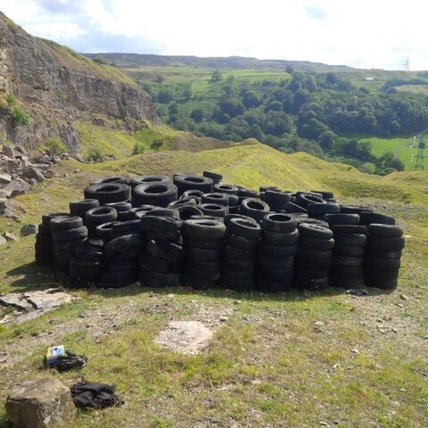 Below is a photograph of what 400 tyres looks like. This week Llangattock litter pickers were alerted to fly tipping of more than 5 times what's is in this photo. Over 2,000 lorry and car tyres were dumped in a quarry in the Brecon Beacons. The group are leading on and working with the landowner and other organisations to bring about their removal.