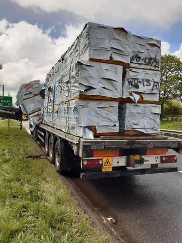 A40, Ross-on-wye closed for a brief time yesterday whilst this load was made secure. Driver reported for insecure load offences. Photograph courtesy of West Mercia Police OPU West Mercia Police (OPU) officers are trained to identify HGV load offences, with the aim of education and enforcement to make our roads safer.