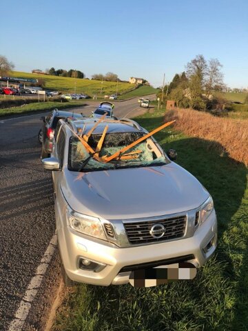 Police in the Forest of Dean dealt with an incident where fence panels had not been secured properly to the roof of this motorists vehicle, resulted in this lucky escape. Police reported the driver for an insecure load. 📷 Gloucester Police