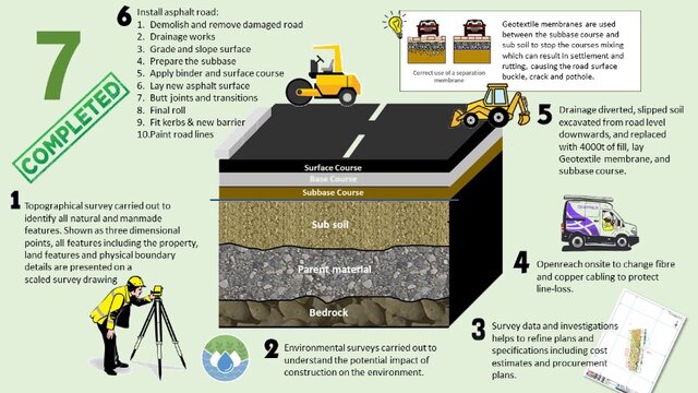 12. Following extensive works to the B4224 road from Fiddler's Green to Fownhope Herefordshire following which was severely damaged by Storm Dennis in early 2020. The B4224 was dealt a double blow by the storm, which caused a 6.5 metre wide landslip and a separate partial collapse of a 100-metre long retaining wall. Balfour Beatty explain that work at the landslip site is now accelerating, and to help explain the stages they need to go through to reach completion, they have put together some information below. 👇 The road is scheduled to reopen this Friday to all traffic.