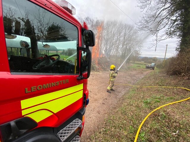 13. Hereford & Worcester Fire and Rescue Service with crews from Hereford Fire Station and Leominster Fire Station both attended a controlled burning Sutton St, Nicholas area, the fire had spread to surrounding trees, approx 5m by 5m and was well alight on our arrival. Crews extinguished using hose reel jets. Photo courtesy of Leominster Fire Service #herefordvoice #herefordnews #herefordshire
