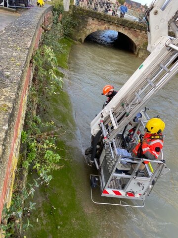 A cat had got himself into a tricky situation yesterday morning...stuck in a precarious position by the fast flowing river right outside the fire station in Leominster. Together with additional assistance with their colleagues from Tenbury and Hereford fire stations attempts were made to rescue him and after a brief dip in the river, the cat managed to self rescue further down stream. A wonderful rescue story from professional and dedicated firefighters who do a lot more work besides tackling fires. 📷 HW Fire & Rescue Service Leominster #herefordvoice #herefordnews #herefordshire