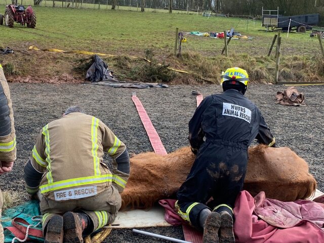 Yesterday they helped rescue a cat from the river and today they’ve been out with their colleagues from Bromyard Fire Station helping get a horse out of a ditch he’d fallen into this morning. 32 yr old Shirenski found himself in an awkward position and was unable to get up. Great teamwork from the crews, his owners, neighbours and the vet...resulted in Shirenski getting back on to his feet after a few hours. Another wonderful rescue story from professional and dedicated firefighters who do a lot more work besides tackling fires 📷 HWFRS Leominster #herefordvoice #herefordshirenews #herefordshire