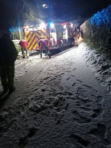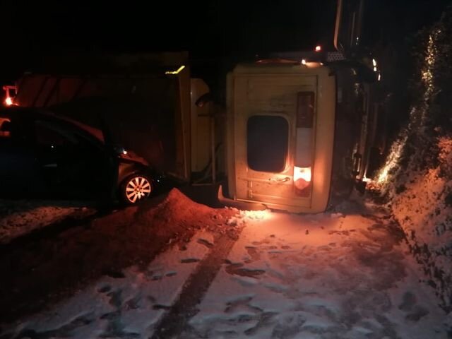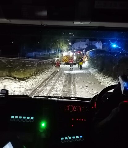 An RTC involving a gritting lorry and another vehicle as ice and snow falls across the county. photographs courtesy of Peterchurch Fire Station Crews from Peterchurch Fire Station along with colleagues from Ewyas Harold Fire Station and South Wales Fire and Rescue Service assisted at the scene. Thankfully there were no casualties, vehicles were made safe and diesel spill dealt with.