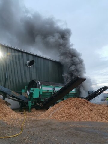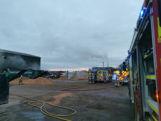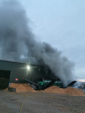 Crews from Leominster Fire Station along with Kingsland fire station attended a large wood chipping machine on fire this afternoon. When crews arrived, they were faced with a well developed fire in the motor area of the wood chipper. Both crews worked quickly to extinguish the fire using 2 fire fighters in breathing aparatus, and also a covering jet to protect the adjacent building which was holding a large quantity of dried wood chip. #herefordvoice #herefordnews #herefordshire