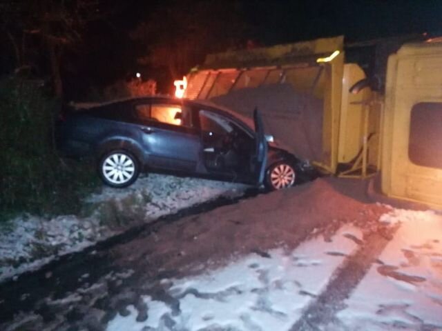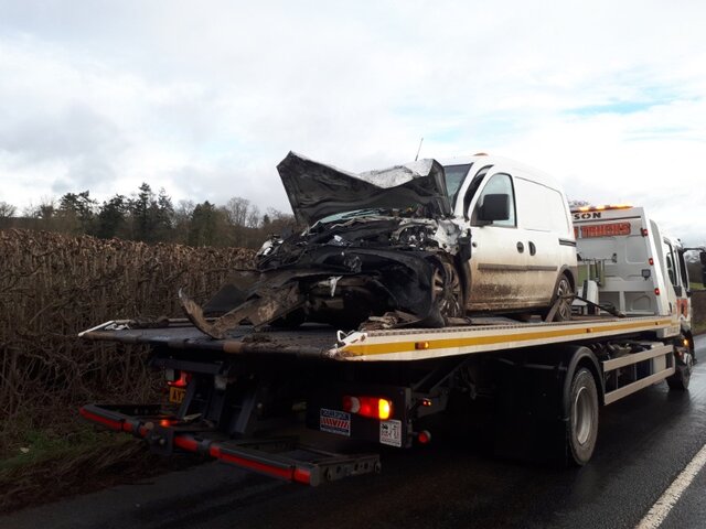 The driver of the Volkswagen that was involved in a collision with a Monmouthshire Council gritting lorry over the weekend has written to us saying he cannot believe he is still alive! Billy Gurney was travelling near Grosmont when the accident happened. He wrote Billy later explained to us today what had happened.. In an exclusive interview with Hereford Voice today the driver of the Volkswagen which was involved in a collision with a Monmouthshire Council gritter lorry over the weekend said William (Billy) Gurney explained to us today what had happened.. He was travelling home and got stuck going up the hill, his car started sliding all over the place so he stopped with his hazards on, he looked up and saw a large HGV vehicle coming toward him with amber flashing lights, clearly the driver of the HGV hadn't seen him initially and Billy said that he feared for his life, he said Once he had got the lorry drivers attention it was too late, the driver tried breaking but just slid towards him. The gritter lorry driver tried to put the lorry into the hedge in an attempt to avoid a collision but it was too late and the lorry overturned and landed on my bonnet he said. Billy thought this was it and he was about to be seriously injured or even lose his life, he blacked out for a few seconds and was relieved to have survived the ordeal and walk away unharmed. Thankfully there was no casualties and both drivers survived. Our original article can be found here https://hfd.news/k1b