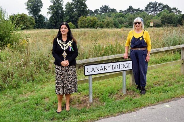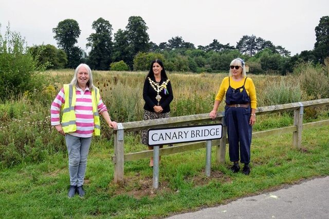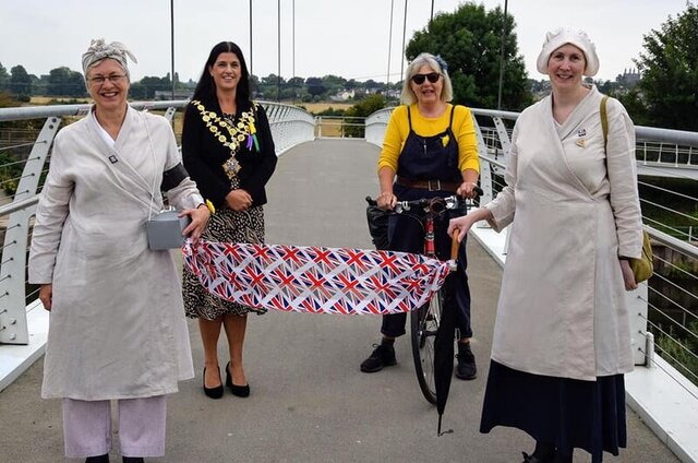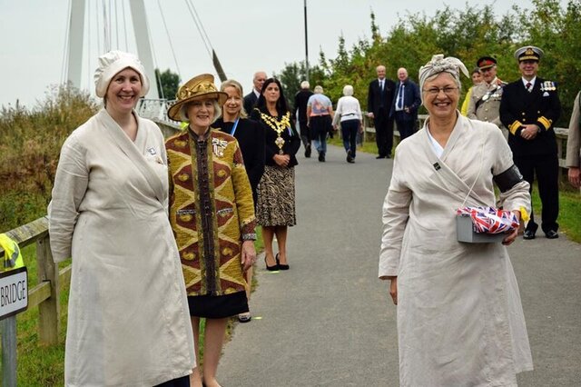Hereford Mayor Cllr Kath Hey attended the renaming of the Canary Bridge (formally the Greenway bridge). The bridge has been offially renamed in memory of The Canary Girls who worked in the Rotherwas Munitions Factory. 📷 Nicola Goodwin #HerefordVoice #Hereford #HerefordNews #CanaryGirls #VEDay75
