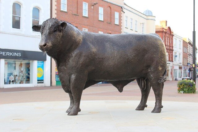The 1.6m (5.2 ft) high bronze statue was sculptured by Brian Alabaster and was funded by a benefactor called Clive Richards as a "thank you to the city". The city's mayor Councillor Brian Wilcox said of the statue when it was unveiled in July 2012 Brian Alabaster was awarded the commission for a life size Hereford bull for Hereford City centre and he said;