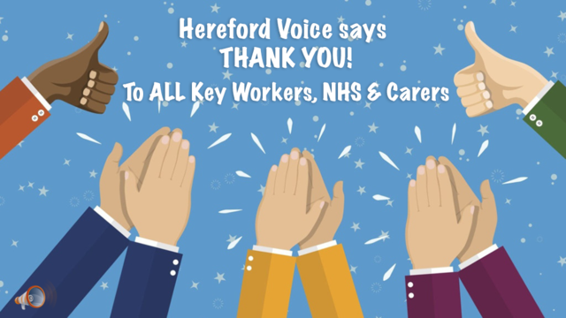 Once again it's Thursday and at 8pm tonight, we will express our solidarity and full support for our front line workers from our doorsteps. Please join us in a 'round of applause' and saucepan tapping for ALL our NHS heroes, carers and key workers #HerefordVoice #Herefordshire #ClapForOurCarers
