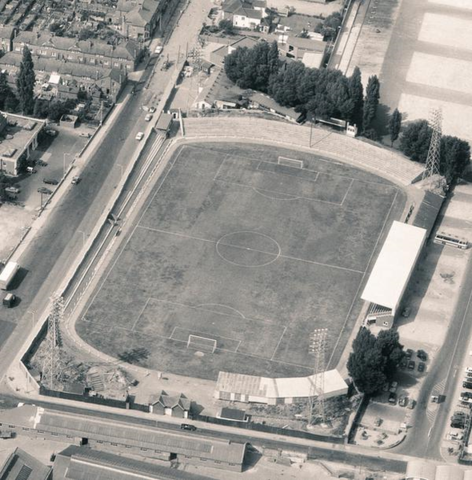 A wonderful aerial view of Hereford's Edgar Street football ground. The Merton stand was built in 1968 following the demolition of the old Edgar Street stand for road widening. The Len Weston was built in 1974. So does anyone know the history of this photo from our Old Hereford Pics archive and what year this could have been?