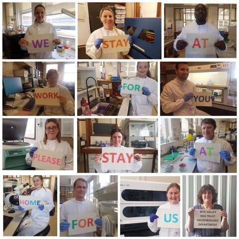 'Thank you' to the fabulous biomedical scientists and technicians, the Infection Prevention team at the microbiology dept at the Wye Valley NHS who have been processing all the COVID19 samples locally to ensure prompt diagnosis for the people of Herefordshire! Photo courtesy Evelyn Williams