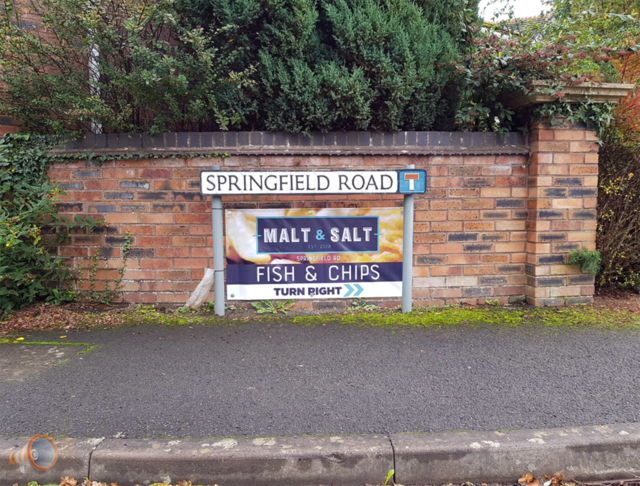 Planning for Banner Advert on Street Sign Refused. A planning application was submitted to advertise a Fish & Chip shop on a 'banner advertisement' to be positioned under a street sign located on the corner off, Springfield Road and the C1131 Withies Road, Withington, Hereford, The advertising banner would have been placed on a privately owned boundary wall on the entrance house of Springfield Road. Reason for refusal: Were the planning dept right to refuse? Planning Application P200200/A