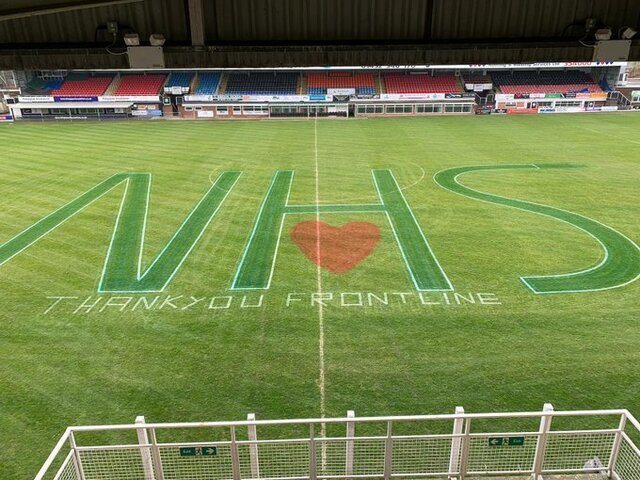 A wonderful tribute to the NHS embossed into the Hereford FC pitch. See the clubs message from their Twitter page below;
