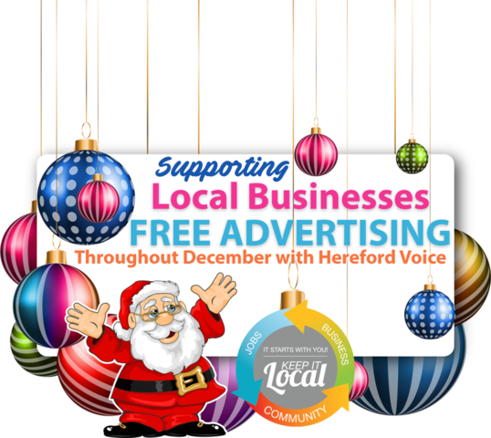 Supporting Local Business: 'Free Advertising' on our Social Media platforms with Hereford Voice throughout December covering the whole festive period. This applies to all local businesses, retailers, pubs, restaurants, events etc.. send us your adverts and include your posters, PDF's, special offers and competition prizes and we will do the rest... Our paid sponsors will also gain an extra months advertising FREE! We aim to promote as many local businesses as possible however, we are expecting a high demand, so this offer is subject to availability on a first-come first-served basis and we cannot guarantee to publish all adverts received. Please send us you your advert, poster, pdf, prize etc via messenger or email sales@herefordvoice.co.uk 'Keep It Local' #HerefordVoice #HerefordLocal