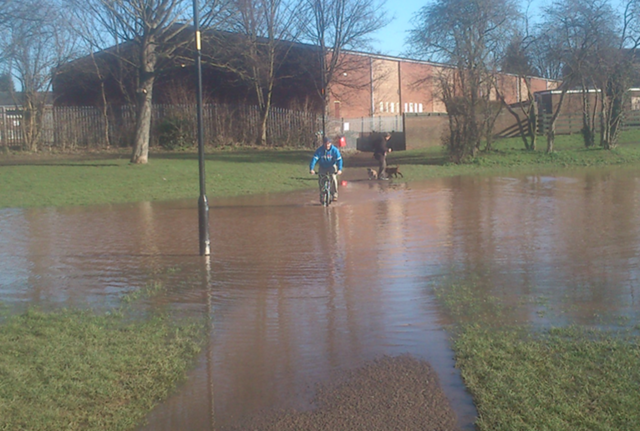 Testify King Bobby. Testify!! Now... Look at this... This is from February 2014, it's me, BMXing through the flood one Sunday morning. Don't I look happy? I'm happy because the last time I remember the field being flooded here was when Hereford United played Man U in the FA cup, and I had to take a massive detour to meet my pals before we went down to the Street. Now, it took on and off, two months of rain and storms, and winter weather, and more rain, and more rain to get this piddly little flood going. And... AND... where the nice outdoor gym is right now, was dry even when this pic was taken. Flood risk my @r$e! Yazor Brook... Pfftt... -