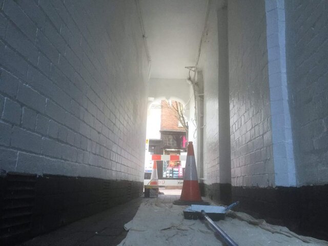 Visible evidence of Hereford BID in action . Brewers Passage. Now graffiti removed and derelict site to the rear (owned by Beaumont Trust!) cleared and turfed. Well done Hereford BID