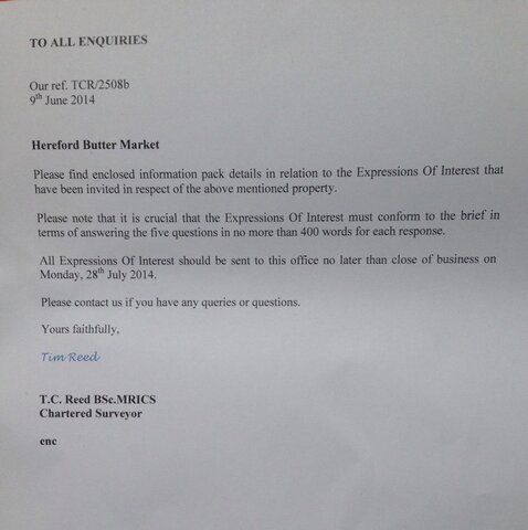 Received email from Victorian society today Hi Michael Just to let you know that I have contacted the council and they say they expect an application imminently and will consult us when it arrives. I have passed all the information to my colleague James Hughes, as Hereford is in his area so the consultation will go to him. Best wishes Kathy -